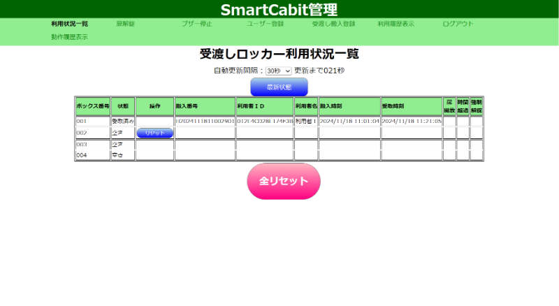 利用状況、利用履歴の確認と利用者のカードの登録削除などの操作を行うことが可能