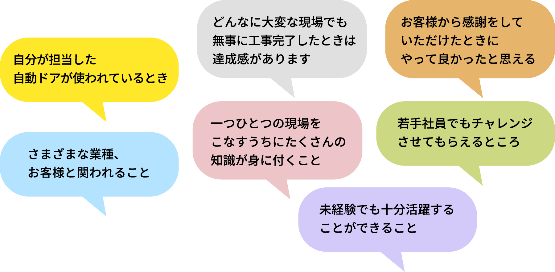 技術研修で自動ドアやステンレスサッシについて勉強したことにより、自分が今まで知らなかった自動ドアをはじめとした建築の知識を身に付けることができたこと。(札幌支店/CS課/2023年入社)